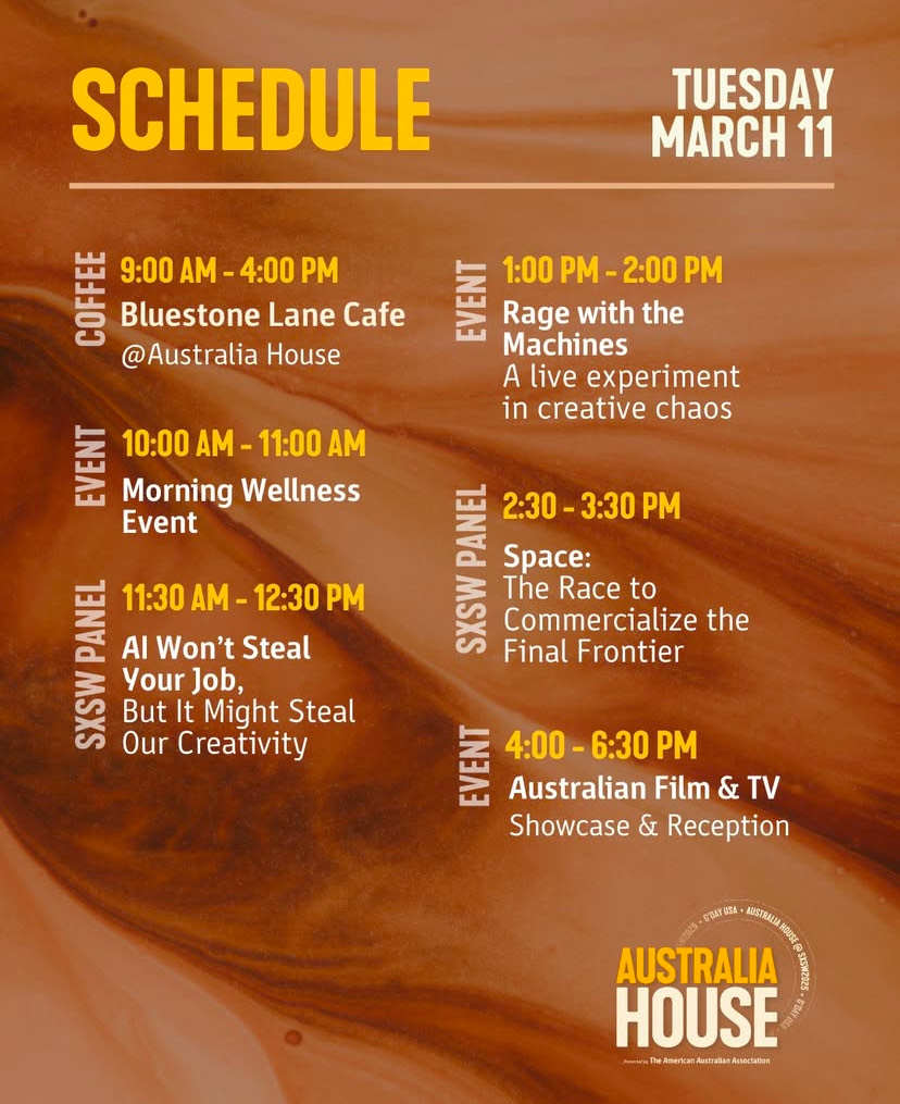 Location: Australia House @ SXSW (Austin Tech Center), 901 E 6th St, Austin, TX 78702
